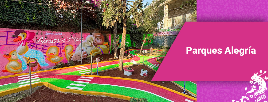 El programa Parques Alegría toma su nombre de un acrónimo que reúne los principios que lo inspiran: Arbolar, Limpiar, Embellecer, Gozar, Reír, Incluir y Amar. Su objetivo es generar espacios públicos dignos, seguros y atractivos para el disfrute de todas y todos los capitalinos.
